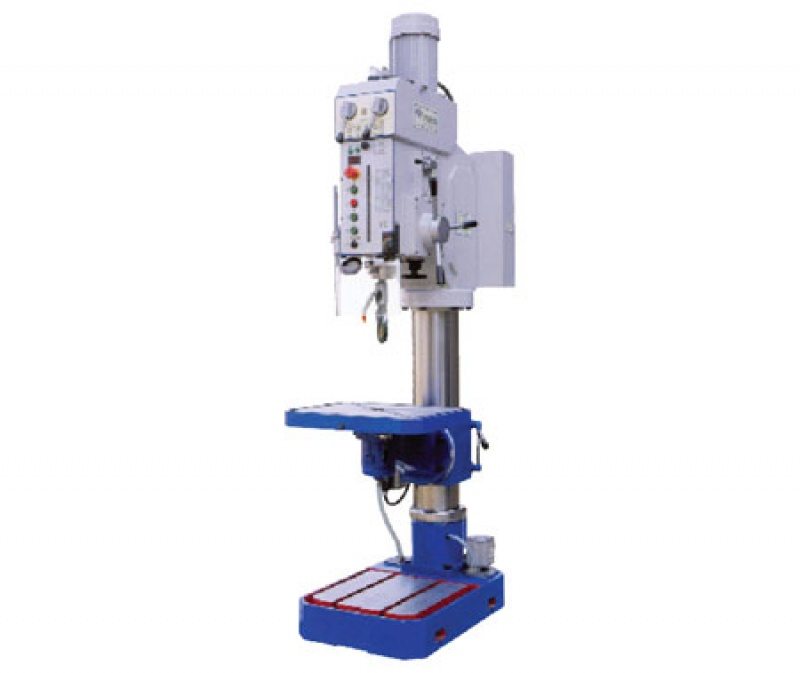 Вертикально сверлильный станок Z5035A полный аналог Российского станка 2С135 с жесткой круглой колонной. Предназначен для выполнения операций сверления, развёртки, зенкования, а также нарезания внутренних резьб, цекования и т.д. 6-ступенчатая механическая коробка скоростей шпиндельной бабки, наличие 2-х скоростного мощного привода с реверсивным вращением, позволяет оптимально подобрать скорость и направление вращения шпинделя. Автоматическая подача шпиндельного узла достигается установкой ее величины и шага через включение электромагнитной муфты, обеспечивающей плавность работы. Станки оснащены системой подачи СОЖ в зону резания. Станки имеют фиксатор глубины сверления и позволяют изменять направление вращения шпинделя после достижения заданной глубины.