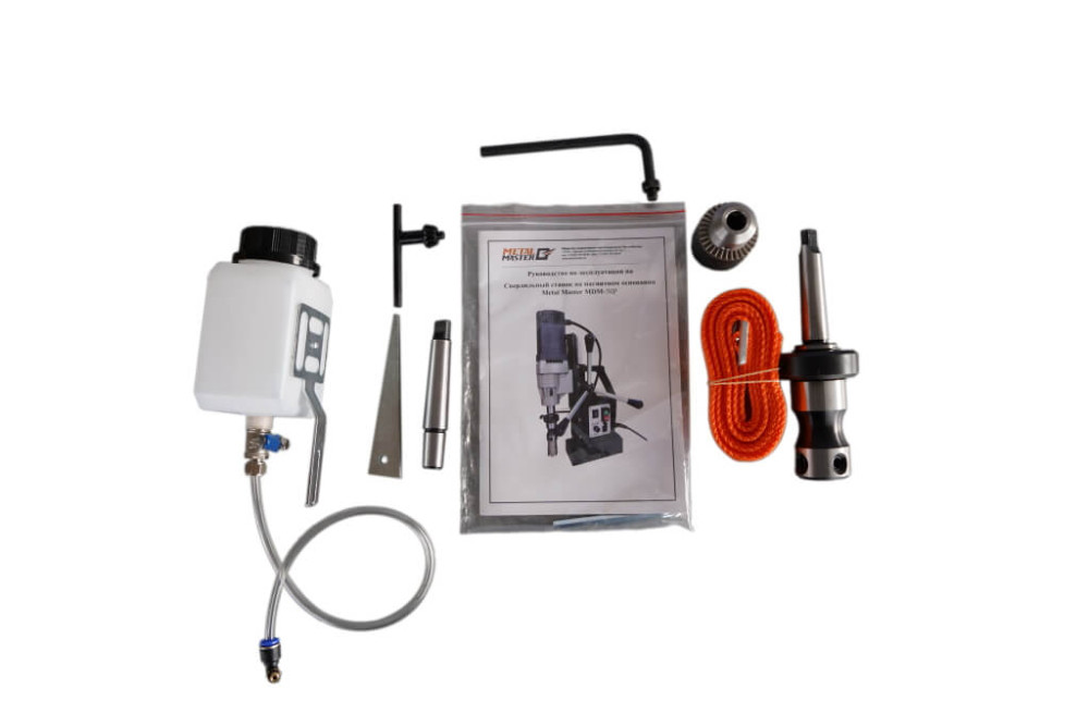 Магнитный сверлильный станок Metal Master MDM-50P – это сверлильный станок на магнитном основании, предназначенный для обработки резанием заготовок из конструкционных сталей, чугуна, сплавов цветных металлов. Данное оборудование применяется для сверления и рассверливания отверстий в труднодоступных местах, экстремальных и полевых условиях. Конструктивной особенностью данного класса станков является электромагнитное основание необходимое для надёжной фиксации станка на заготовке в различных положениях (в том числе горизонтальном и перевернутом). Основные преимущества данной модели: Высокая мощность и частота вращения при сравнительно малых габаритах делают эту модель одной из лучших в своем классе; Наличие регулировки частоты вращения шпинделя позволяют подобрать наиболее оптимальные режимы резания для различных материалов; Пластиковый кейс, который входит в стандартную комплектацию станка, обеспечивает удобство транспортировки и хранения оборудования; Направляющие типа ласточкин хвост обеспечивают точность перемещения сверлильной головки. В стандартную комплектацию станка входят: Пластиковый кейс; Патрон для спирального сверла; Емкость СОЖ; Инструкция на русском языке.